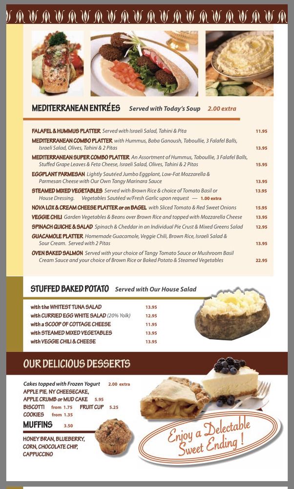 Served with Israeli salad, Taboullie, tahini, and pita.