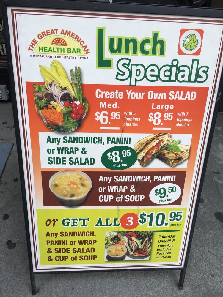 The Great American Health Bar, located at 35 W 57th St, New York, NY 10019, offers a diverse menu of salads, desserts, and unclaimed dishes. They provide delivery, takeout, reservations, and cater to vegan options. With a casual setting and moderate noise level, they accept credit cards and Apple Pay. The restaurant is kid-friendly, perfect for lunch, and offers street parking, beer, and wine only. Additionally, they provide outdoor seating, Wi-Fi, and bike parking. A standout on the menu is the Avocado and Sweet Beet Salad, along with the Baked Salmon, Sweet Potato, and Quinoa Salad. Customers have praised the clean and healthy food, generous portions, and excellent customer service. The Great American Health Bar is a must-visit for delicious and nutritious meals in New York City.